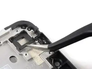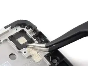 Используйте пинцет, чтобы снять чёрный кронштейн камеры.
