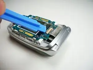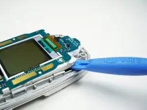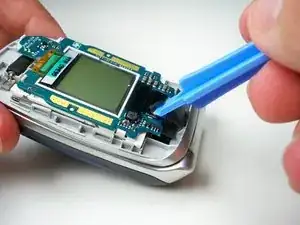 Используйте пластиковый инструмент для открытия, чтобы поднять плату экрана и освободить зажимы, удерживающие её на месте.