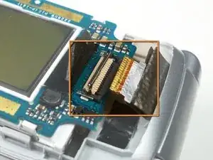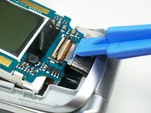 Используйте пластиковый инструмент для открытия, чтобы поднять черную ленту с разъема шлейфа.