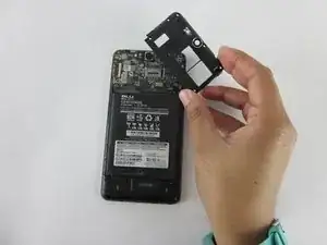 Поднимите черный удерживающий язычок на разъеме ZIF фронтальной камеры.