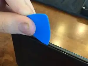 Проведите медиатором по кругу телефона до тех пор, пока задняя крышка не ослабнет и не будет готова к снятию.