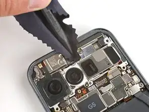 Используйте наконечник медиатора для аккуратного поддёма фронтальной камеры от верхнего края и извлеките её.