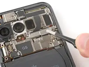 Используйте отвертку Torx Plus 3IP, чтобы выкрутить винт длиной 5,7 мм, фиксирующий кронштейн фронтальной камеры.