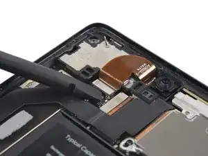Используйте лопаточку, чтобы отсоединить кабель фронтальной камеры, поддев разъем вертикально вверх из его гнезда.