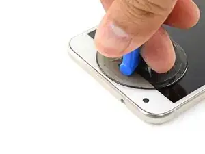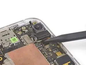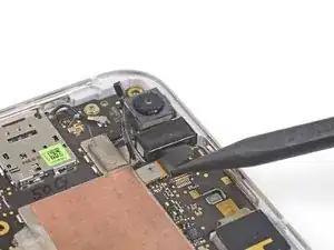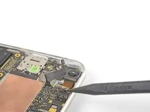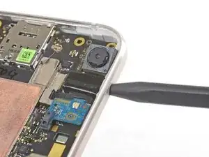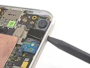 Используйте острие лопатки, чтобы поддеть и ослабить модуль фронтальной камеры из ее разъема.