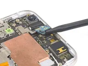 Используйте острие лопатки, чтобы поддеть и отсоединить разъем фронтальной камеры.