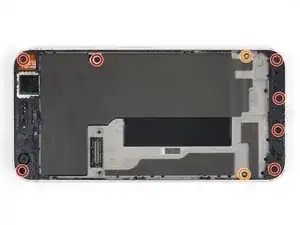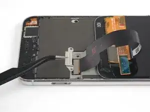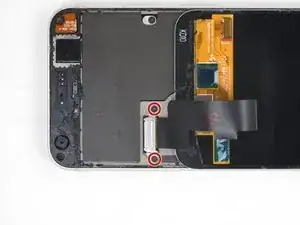 Выкрутите два винта T5 длиной 4 мм, фиксирующие скобу шлейфа дисплея.