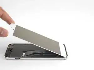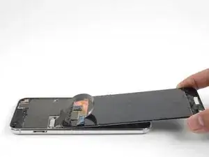 После того как вы разрезали клей по периметру телефона, осторожно приподнимите сборку дисплея за правые углы.
