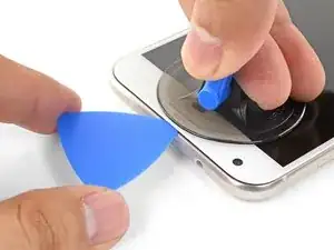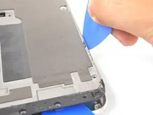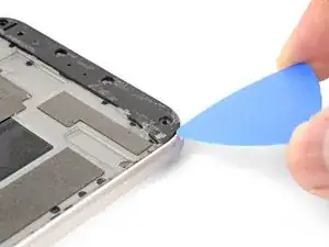 Найдите небольшой вырез в нижнем левом углу рамки и вставьте в него медиатор для вскрытия.