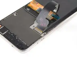 Не пытайтесь снять сборку дисплея. Она все еще соединена гибким шлейфом.