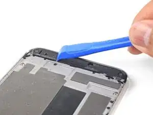 Аккуратно проведите острие лопатки под разъем для наушников и подденьте его, чтобы отсоединить.