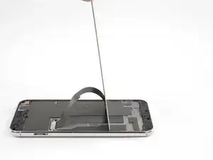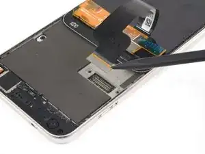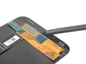 Используйте кончик лопатки, чтобы поддеть и отсоединить шлейф дисплея от разъема.