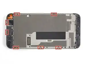 Перед установкой нового дисплея обязательно удалите все остатки клея с корпуса. Используйте лопатку или инструмент для вскрытия, чтобы соскрести его, и высококонцентрированный изопропиловый спирт для удаления остатков.