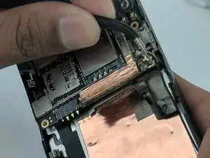 Удалите разъем «jawbone», который находился под майларовой лентой, аккуратно потянув за него пинцетом с тонкими наконечниками.