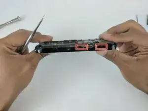 Удалите заднюю крышку, используя лопатку, чтобы аккуратно отщелкнуть каждый зажим, удерживающий крышку на месте, затем приподнимите внешние кромки задней крышки.