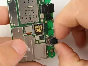 Выньте фронтальную камеру из материнской платы, нажав на неё наконечником лопатки.