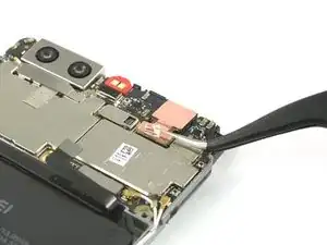 Снимите металлическую пластину, которая прижимает разъём гибкого кабеля дисплея.
