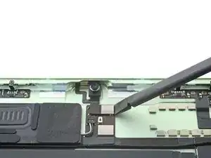 На верхнем краю iPad расположены модуль фронтальной камеры и два датчика окружающего света. Эти компоненты легко повредить, если слишком глубоко вставить разделительный инструмент.