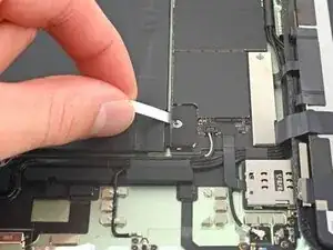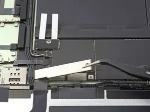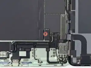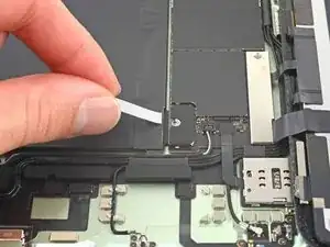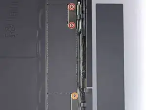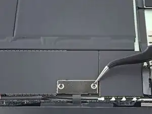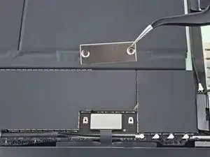 Обратите внимание, что в разъёме батареи на материнской плате имеются консольные пружины, которые прижимаются к контактным площадкам батареи. Поскольку и материнская плата, и аккумулятор приклеены, необходимо вставить тонкий и гибкий предмет между контактами, чтобы отключить батарею.