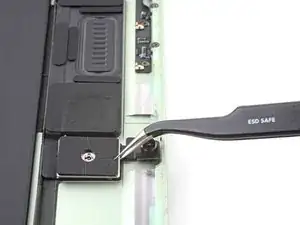 Используйте крестовую отвёртку, чтобы выкрутить три винта, закрепляющих скобы кабелей дисплея и цифрового преобразователя на материнской плате: