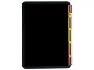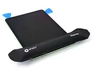 Приложите разогретый вспомогательный инструмент iOpener к верхнему краю экрана на две минуты.