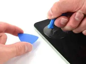 Потяните присоску вверх с равномерным и постоянным усилием, чтобы образовалась щель, достаточная для вставки инструмента для вскрытия.