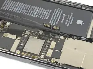 Осторожно отодвиньте разъемы кабелей Face ID от платы логики, чтобы получить доступ к разъему фронтальной камеры под ними.