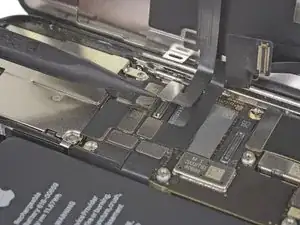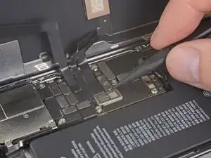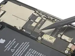 Используйте лопаточку или чистый ноготь, чтобы приподнять разъём батареи из его гнезда на логической плате.