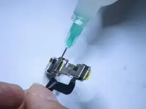 Слегка отогните разъём от логической платы, чтобы он случайно не соприкоснулся с гнездом и не подал питание на телефон во время ремонта.