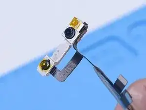 Через час снимите модуль фронтальной камеры. Фронтальная камера успешно заменена. Снимите ленту Каптон с инфракрасной камеры и проекторе точек.