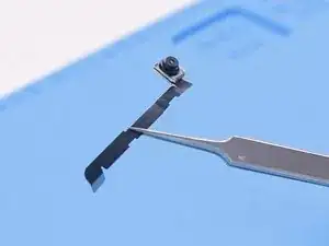 Возьмите блок фронтальной камеры пинцетом, осторожно, чтобы не оставлять отпечатков на датчиках.
