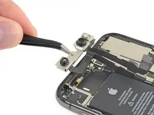 Поскольку фронтальная камера входит в состав блока вместе с инфракрасной камерой и проектором точек, при сохранении функции Face ID необходимо заменить только фронтальную камеру отдельно.