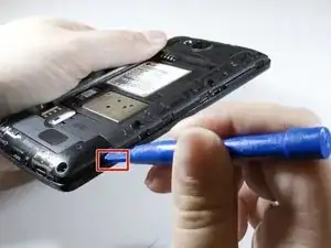Поместите небольшой пластиковый инструмент для открывания или палец в выемку у основания аккумулятора.