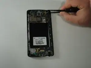 Все еще используя пинцет, осторожно потяните вверх, чтобы извлечь камеру из телефона.