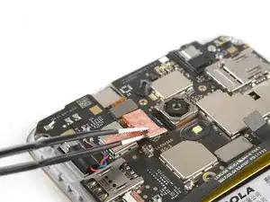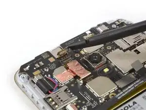 Используйте край лопатки, чтобы приподнять и отсоединить гибкий кабель фронтальной камеры.