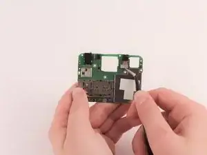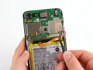 С помощью изогнутых пинцетов отсоедините два разъёма от материнской платы, потянув металлические головки вверх и в сторону от телефона.