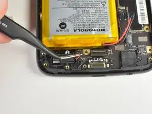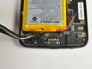 Пинцетом отсоедините разъём вибрационного мотора возле нижней части устройства.