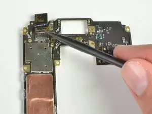 Теперь используйте плоскую сторону монтажной лопатки, чтобы осторожно отсоединить камеру от материнской платы.