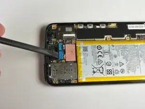 Просуньте кончик лопатки под кабель датчика отпечатка и осторожно приподнимите, чтобы ослабить кабель от телефона.