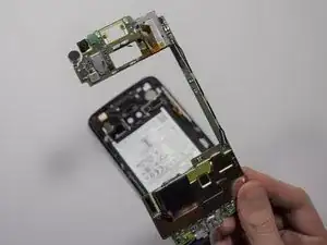 Отсоедините тыловую камеру от платы, осторожно потянув в сторону нижней части телефона.