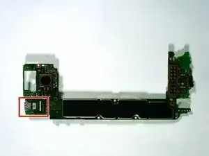 Найдите шлейфовый разъём в верхнем правом углу телефона.