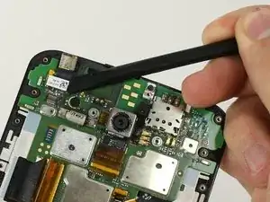 Используйте лопатку, чтобы аккуратно отсоединить разъем фронтальной камеры.