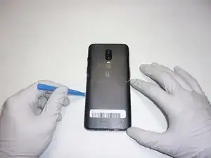 Начните с одного из левых углов и двигайтесь вокруг телефона, используя пластиковый инструмент для открытия.