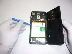 Используйте пластиковый инструмент для открытия, чтобы приподнять заднюю крышку.