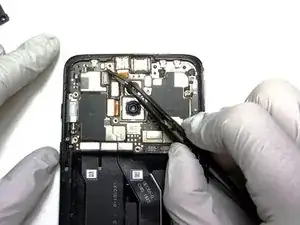 Поднимите фронтальную камеру с помощью пинцета.