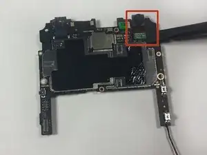 Фронтальная камера расположена на обратной стороне большого чипа материнской платы. Для удаления фронтальной камеры необходимо полностью извлечь материнскую плату телефона.
