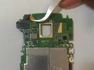 Используя пинцет, аккуратно отведите каждую ленточную шлейфовую клемму вверх от её разъёма. После этого материнская плата свободно отделится от задней стороны экрана.
