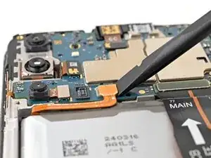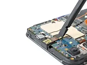 Используйте плоский конец лопатки, чтобы приподнять и отсоединить разъем передней камеры с нажатием.