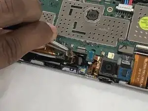 Снимите заднюю панель планшета с помощью пластикового инструмента для открывания.