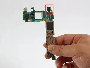 С помощью пинцета извлеките фронтальную камеру с материнской платы.